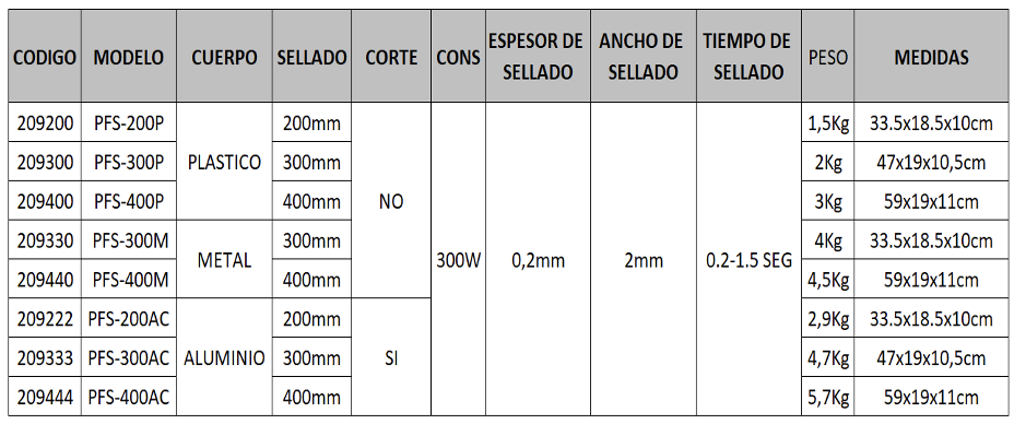 SELLADORAS DE BOLSA ELECTRICA TIPO MANUAL SERIE PFS